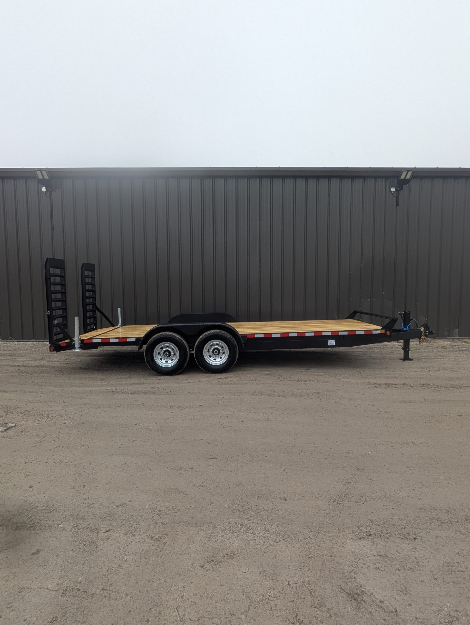 The 2026 7×20 Canada Trailer (and similar 14,000 lb GVWR models like Maxi-Roule/N&N) is a heavy-duty, open car/equipment hauler. Key features often include dual 7,000 lb axles, 2′ beavertail for easy loading, pressure-treated wood decking, LED lights, and high-capacity ramps. These units are designed for heavy hauling with roughly 10,000–11,000 lbs+ payload capacity.