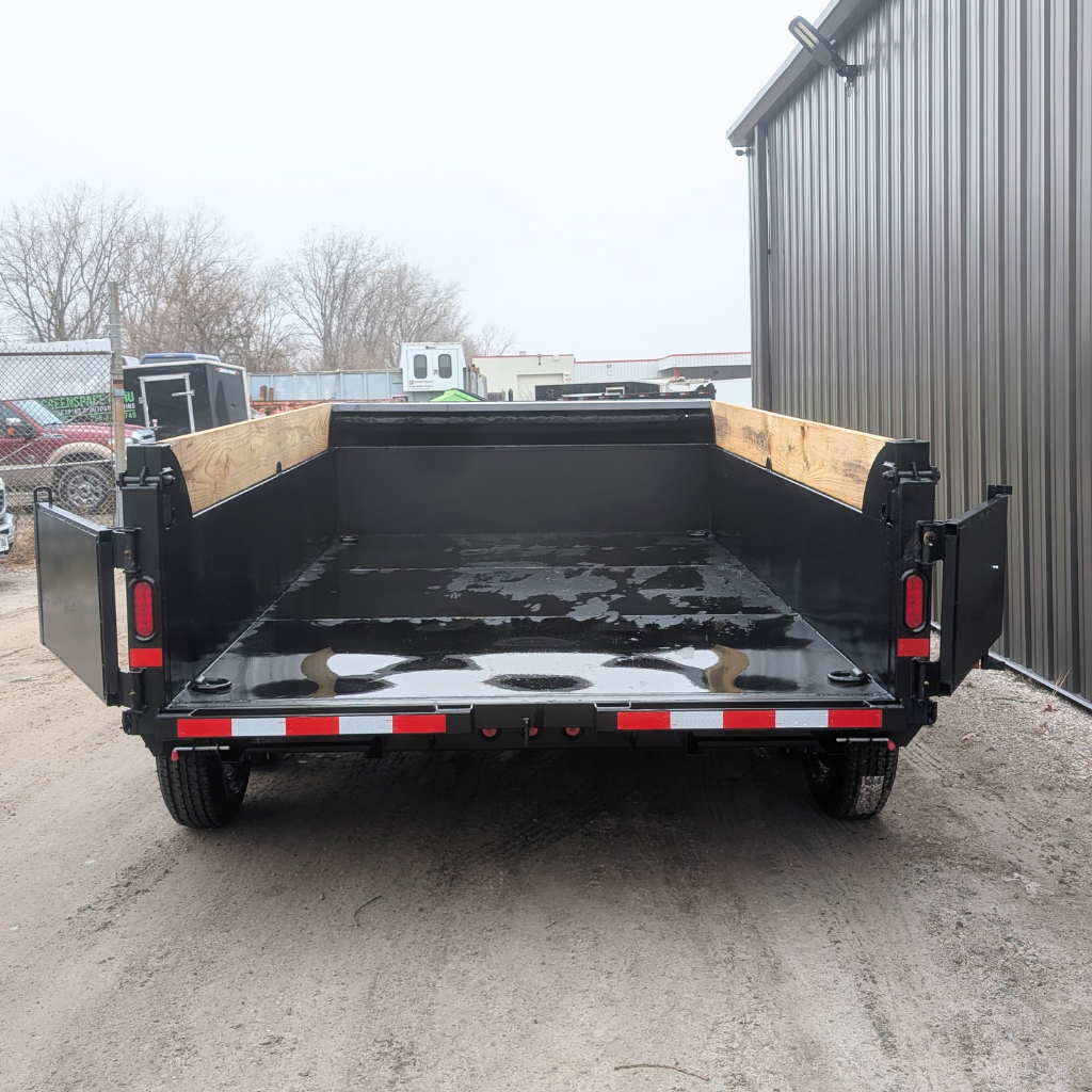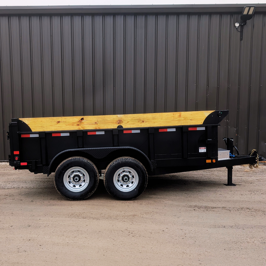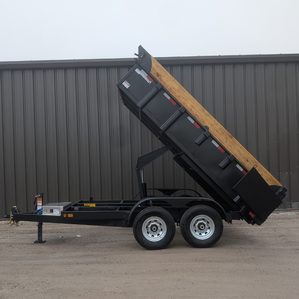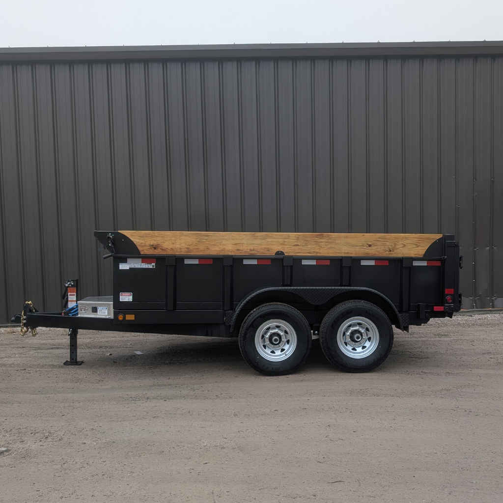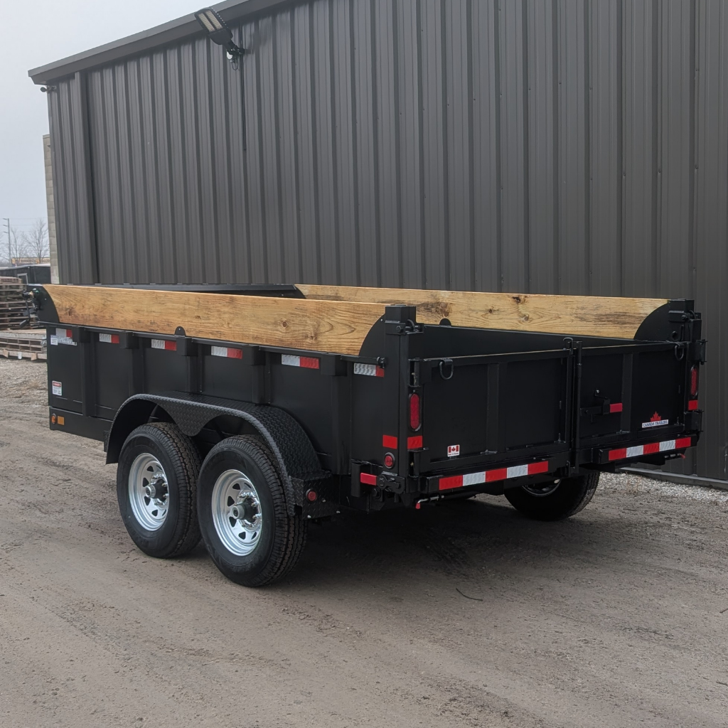 The 2026 Canada Trailer 83×12 Dump (14,000 lbs GVWR) is a heavy-duty tandem axle trailer. It features dual 7,000 lb axles, a payload capacity of approximately 10,385 lbs, and options for 48-inch high sides, suitable for bulk material transport.