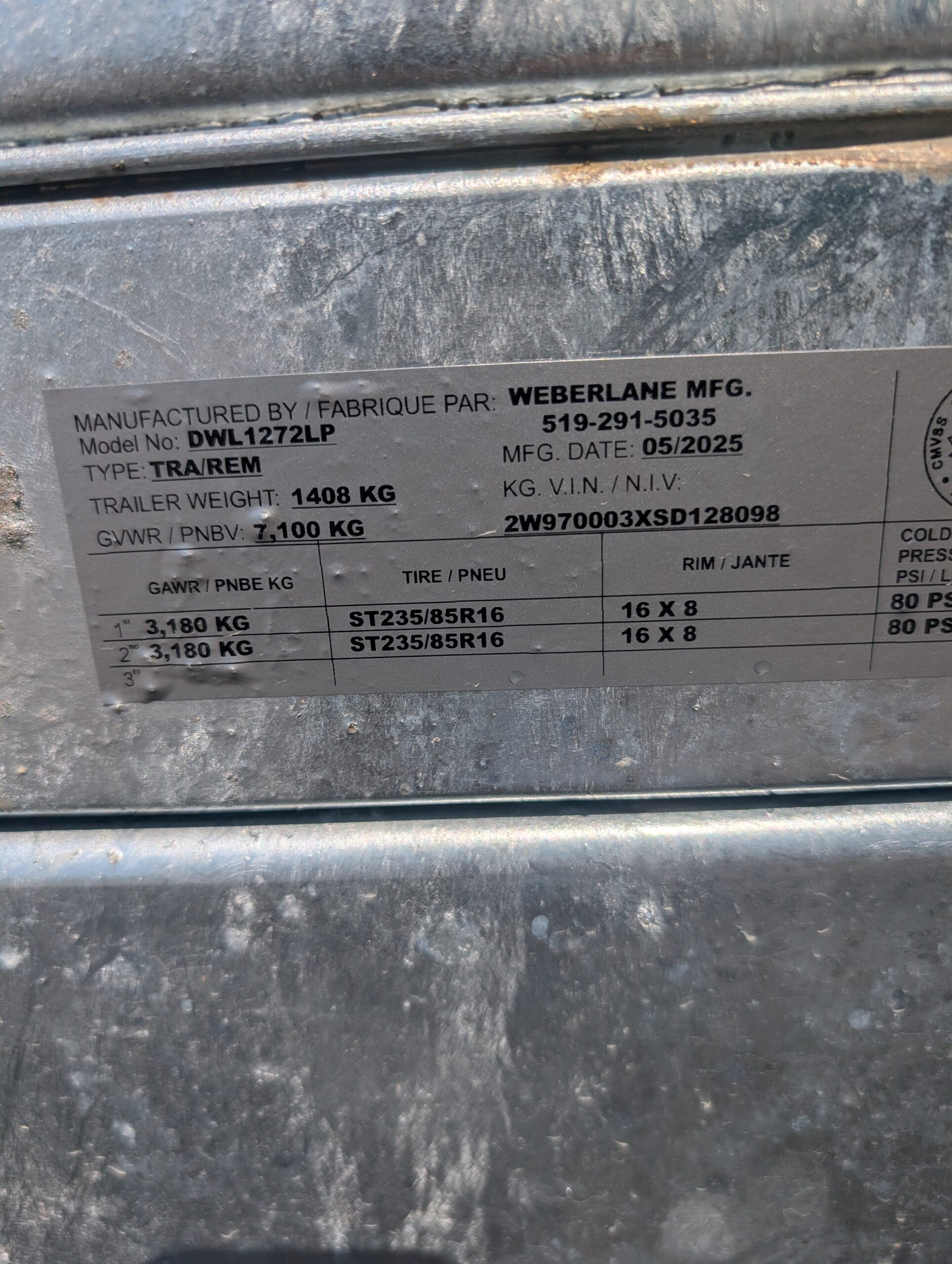 USED – DWL1272LP 2025 WEBER LANE 82X12 CONTRACTOR SERIES DUMP 14,000 GVWR GALVANIZED